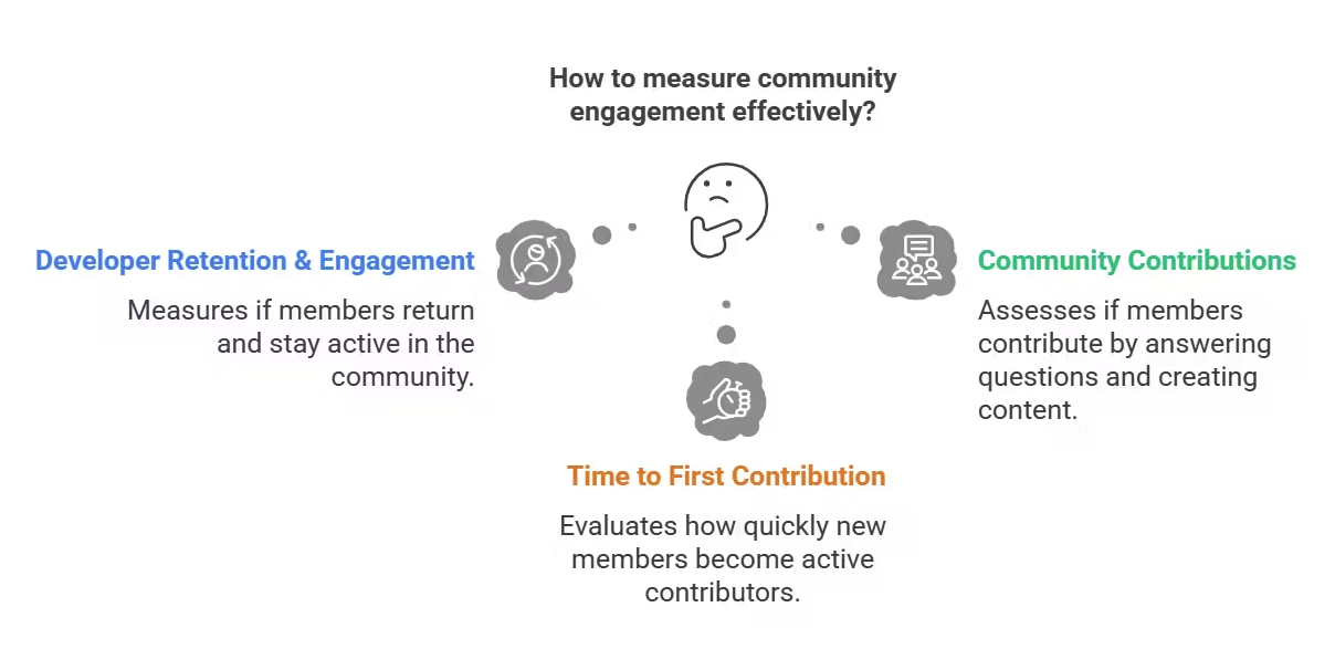 - Developer retention: Do people return to your spaces? Are they engaging week after week, not just once?